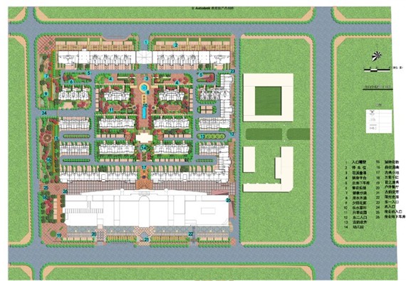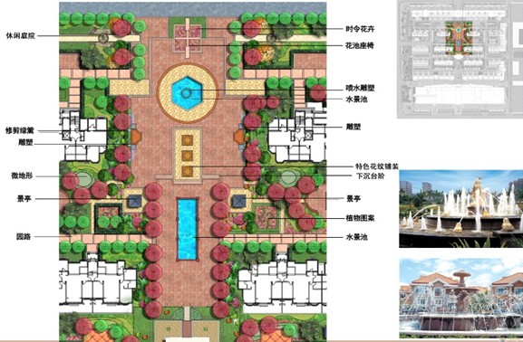 項(xiàng)目考慮“人、自然、空間”之間的和諧關(guān)系,堅(jiān)持以人為本的設(shè)計(jì)理念,在設(shè)計(jì)中以生態(tài)環(huán)境優(yōu)先為原則,充分考慮建筑和景觀之間的關(guān)系,通過(guò)材料和造型的運(yùn)用,將歐式建筑和新古典景觀進(jìn)行風(fēng)格樣式上的對(duì)接。在規(guī)劃的同時(shí),輔以景觀設(shè)計(jì),最大限度的體現(xiàn)居住區(qū)本身的底蘊(yùn)。設(shè)計(jì)中結(jié)合當(dāng)?shù)靥厣谛^(qū)中設(shè)置小區(qū)中心景觀軸線、橫向景觀帶、生態(tài)種植區(qū)等。在中心景觀軸線當(dāng)中設(shè)置了歐式的矮墻噴泉、花溪疊瀑、下層廣場(chǎng)、噴泉水景等,使居民樂(lè)居其中。規(guī)劃設(shè)計(jì)注重園林景觀的可參與性,在小區(qū)內(nèi)設(shè)置開(kāi)闊的硬質(zhì)景觀,如波紋鋪地、琴韻廣場(chǎng)等。小區(qū)內(nèi)公共空間、私密、半私密空間如:下層廣場(chǎng)和健康步道兩者的公共性和私密性設(shè)計(jì)對(duì)比強(qiáng)烈,動(dòng)靜結(jié)合。通過(guò)不同的景觀設(shè)計(jì),也為小區(qū)居民提供空間上充足、多樣的休閑、交往、活動(dòng)場(chǎng)地,營(yíng)造和諧、友善、溫馨的人際關(guān)系氛圍。