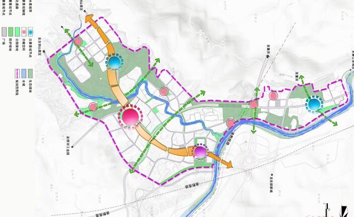 將有活力連續(xù)的街道、街區(qū)和公園用完善的步行系統(tǒng)和綠色廊道串聯(lián),加強(qiáng)山與城、水與城、山與水的對(duì)話,聯(lián)系起基地的生態(tài)要素,構(gòu)筑城市的生態(tài)基底。在這個(gè)基底之上,打造山環(huán)水繞的城市環(huán)境、高品質(zhì)社區(qū)、汽摩交易中心、社區(qū)生活中心,使基地成為未來(lái)城市的活力源泉、文化源泉、發(fā)展源泉和形象高地。