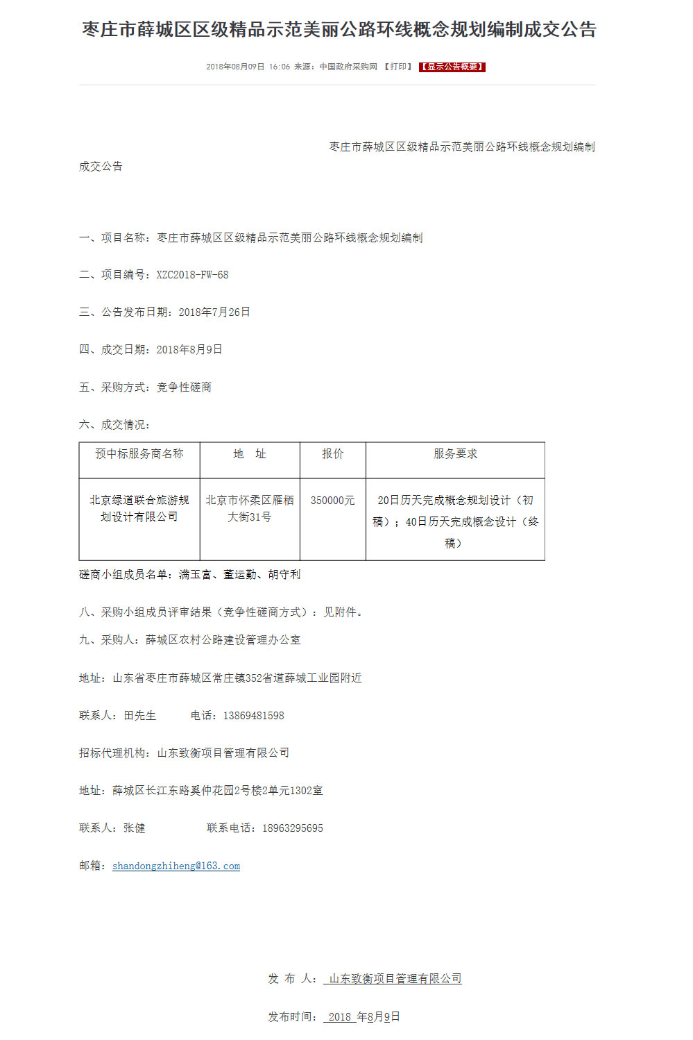 北京綠道聯合旅游規劃公司成功中標《棗莊市薛城區區級精品示范美麗公路環線概念規劃項目》
